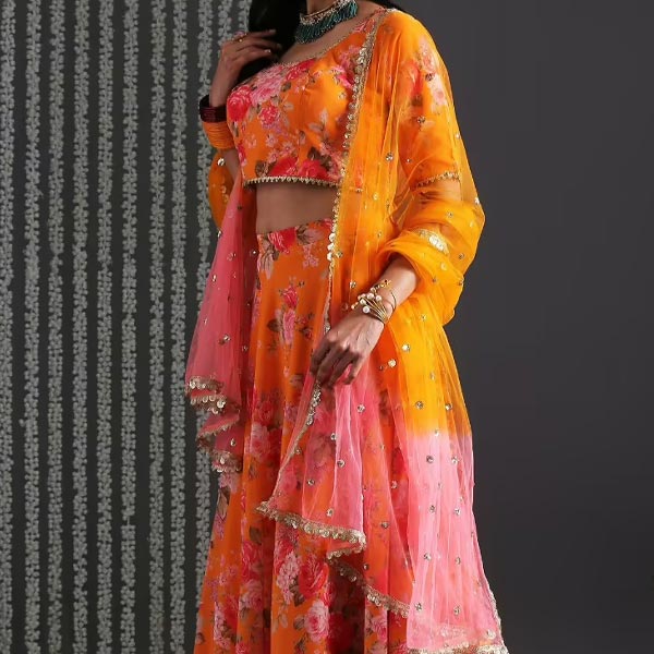 Look drop-dead gorgeous as you make your way to the next celebration wearing this Bageecha Yellow Floral Skirt with Crop top & Dupatta Set from Gajra Gang. The floral printed crop top, skirt, and dupatta feature dainty embellishments and will help you flaunt a distinctive festive look. Pair it with chaandbalis and juttis to make a statement at the next soiree!