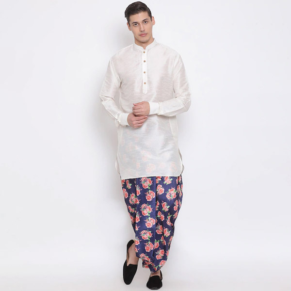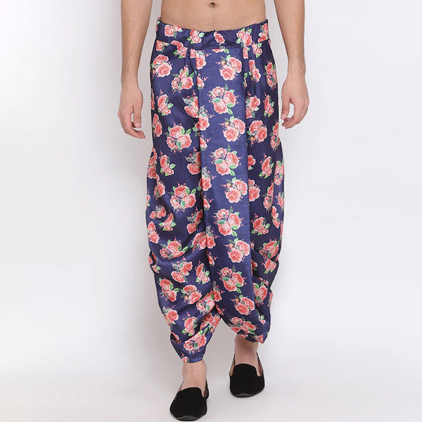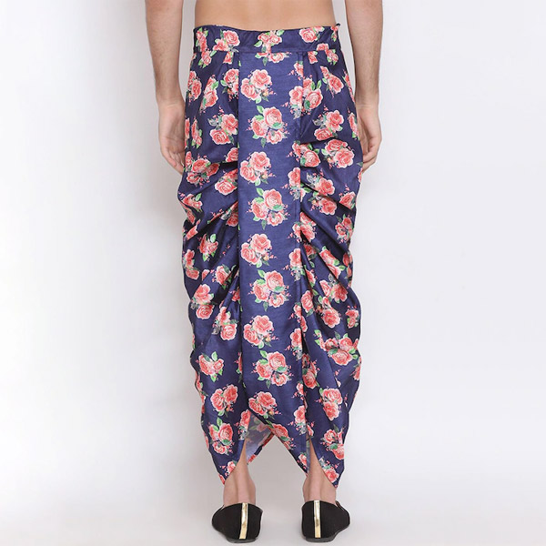 "Men Blue & Pink Floral Printed Dhoti