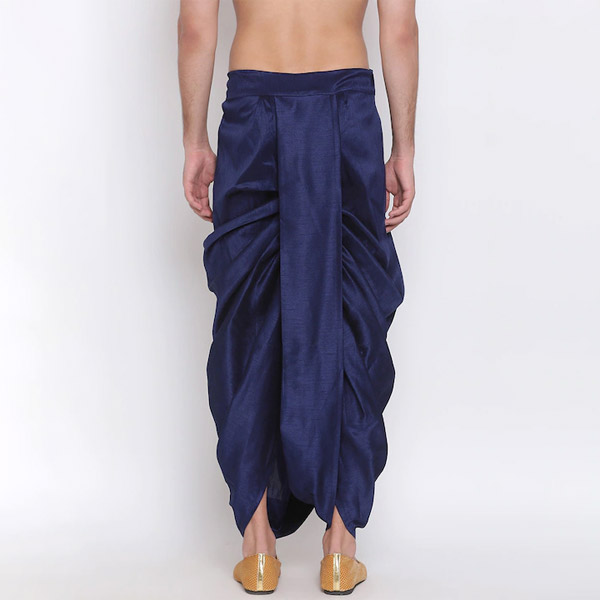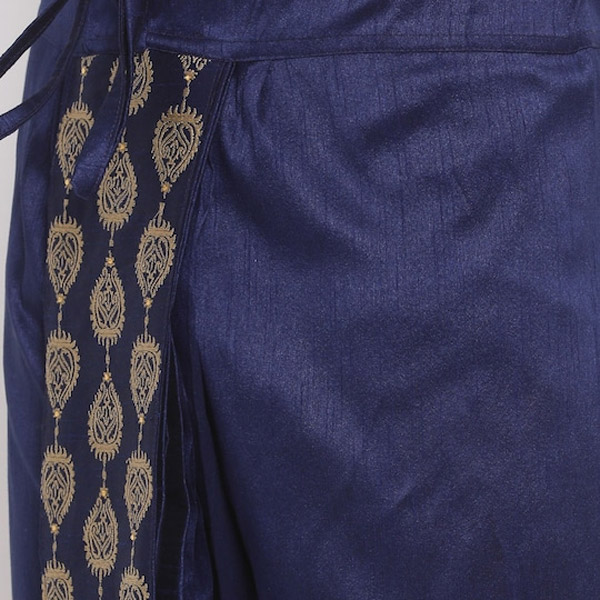 "Men Navy Blue Embroidered Dhoti "