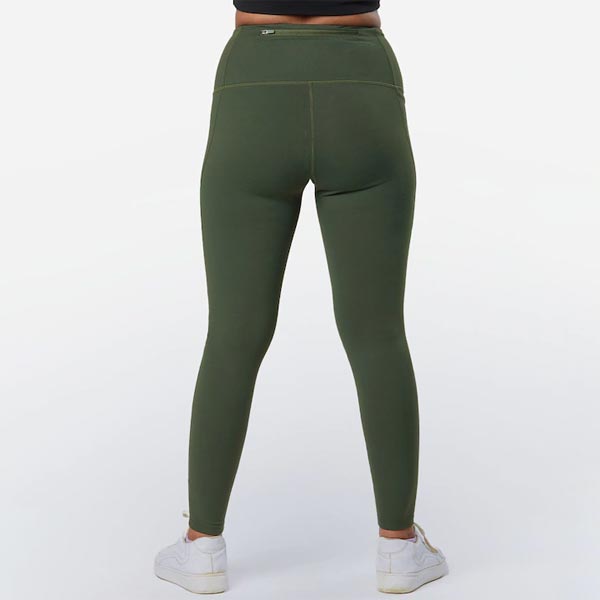Olive-coloured solid high-rise ankle length leggings with 2 pockets, has an elasticated waistband and slip-on closure