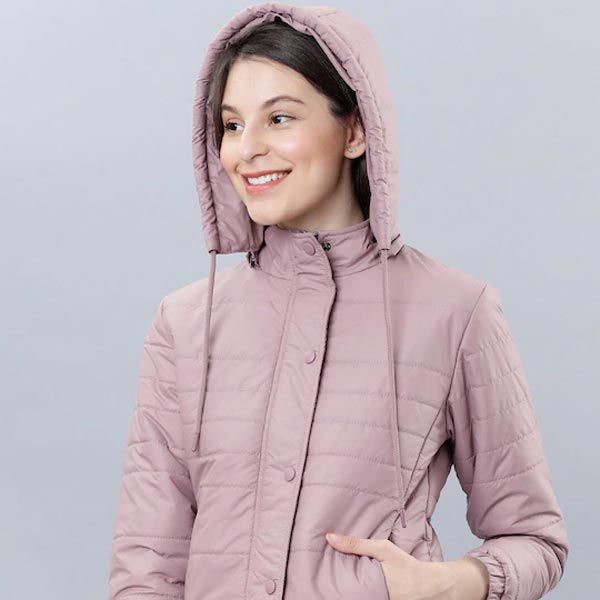 Women Pink Solid Padded Jacket